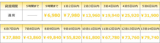 ※15泊16日以上のご利用の場合はお電話かメールにてお問い合せ下さい。